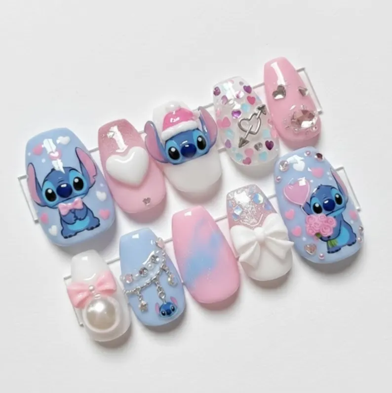 I specialize in custom design sets such as hand painted, 3D Designs, character nail art, and more. My main focus is creating detailed, unique sets, with most designs being original and created by me.
